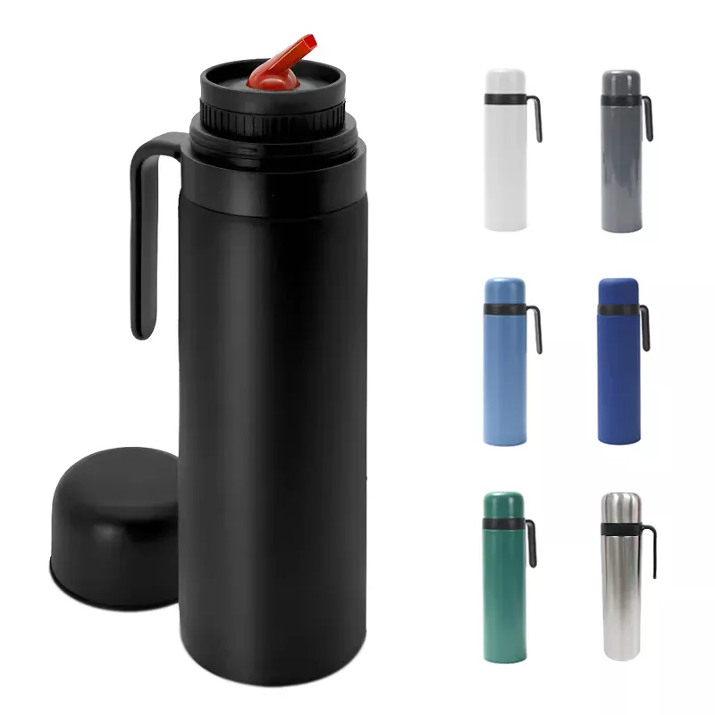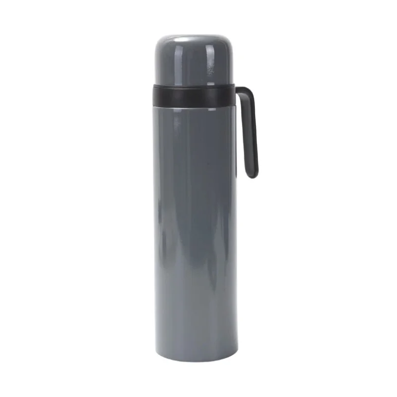 Termo de 1 litro de capacidad, abricado con acero inoxidable 304 en su interior que garantiza resistencia a la corrosión, y acero inoxidable 201 en su exterior, que proporciona durabilidad y un acabado resistente en color blanco. Incorpora un práctico pico cebador que permite verter líquidos de manera controlada y precisa. Su diseño se caracteriza por una media manija lateral, que facilita el agarre y el transporte del termo de forma cómoda y segura.Su diseño de doble pared con aislamiento al vacío asegura una retención térmica superior manteniendo las bebidas calientes por horas y las frías aún más tiempo.Colores: negro, blanco, gris, verde, azul, celeste