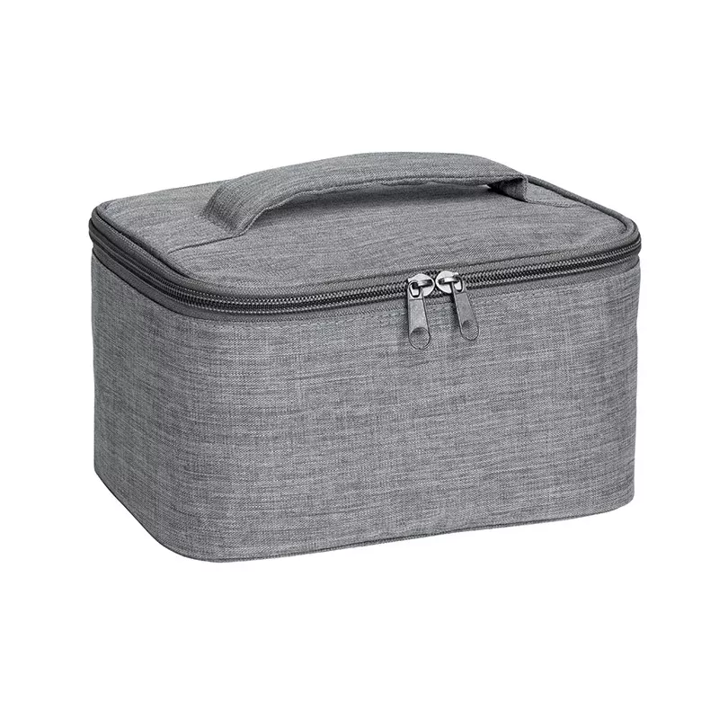 Neceser fabricado en poliéster 300D de alta densidad. Manija acolchada y cierre doble. Interior forrado y bolsillo interior con cierre.