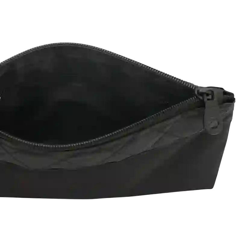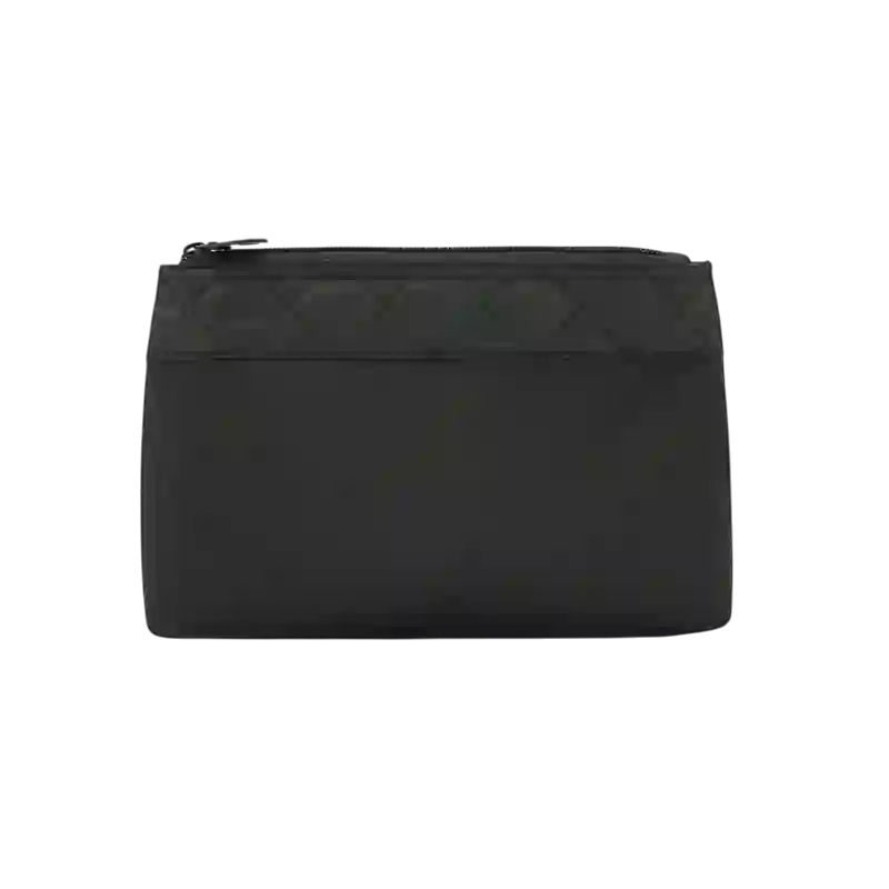 Neceser practico con cierre, confeccionado en microfibra. Es ideal para guardar cosméticos, accesorios o artículos personales. Incluye costura decorativa en la parte superior. Mide 22 x 5 x 16 cm. Disponible en negro